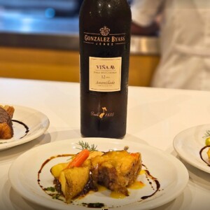 Siguió con costillas a la naranja junto a un Amontillado, que equilibró dulzor y complejidad.